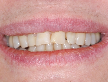 I quattro incisivi superiori, fortemente abrasi, sono stati ricostruiti utilizzando faccette in ceramica. Una preparazione parziale permette di conservare gran parte della struttura degli elementi, i quali vengono rivestiti con manufatti protesici preparati dal laboratorio e applicati con metodica adesiva.